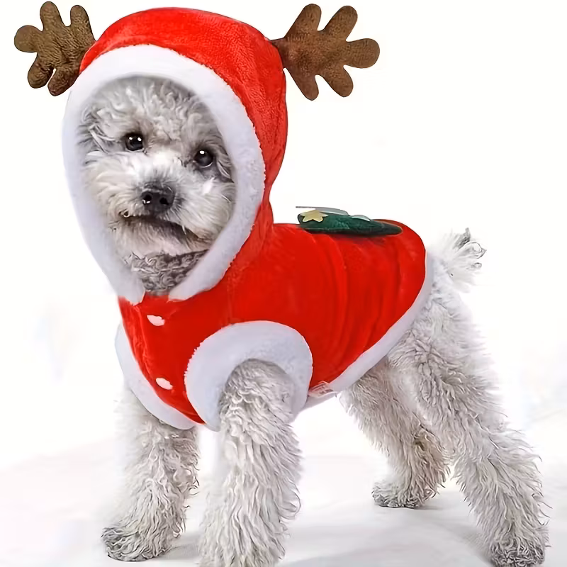 Vánoční Kostým pro Psy – Teplý Zimní Obleček se Sobími Parůžky