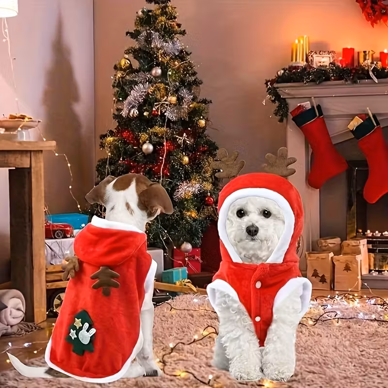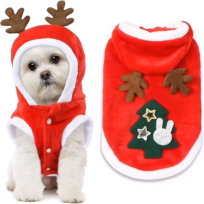Roztomilý vánoční kostým pro malé a střední psy. Měkký, teplý, pohodlný materiál, snadné zapínání a perfektní na focení nebo vánoční oslavy.