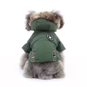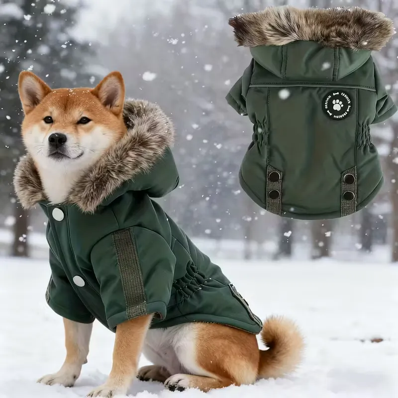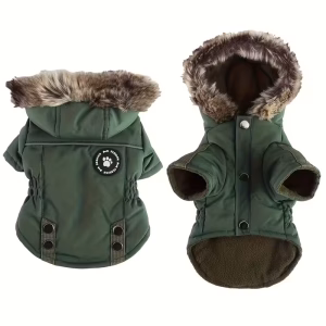 Stylový a funkční zimní kabát pro psy je ideální volbou pro chladné, větrné a zimní dny. Vyroben z odolného, větruodolného materiálu s měkkou fleecovou podšívkou, která udržuje psa v teple i během mrazivého počasí. Kapuce s umělou kožešinou poskytuje dodatečnou ochranu proti větru a dodává moderní vzhled.