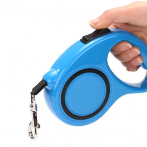 Automatické vodítko 5 m pro psy a kočky do 15 kg. Bezpečné, pohodlné a odolné. Modrá barva, ergonomická rukojeť a pevná karabina.